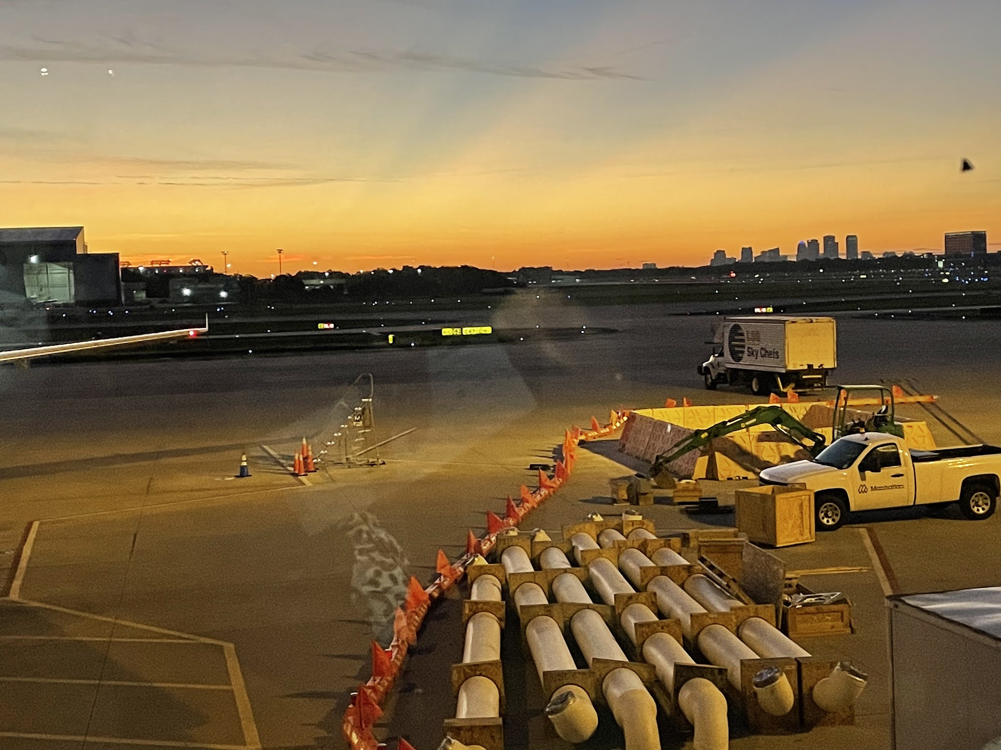 This day is really two days long, so it's hard to know how to label it!  Up at 2:30 and in the car by 4:00, or Oh Dark Thirty as it's sometimes known!  Car in Betsy's driveway before 4:45. It's an easy trip when there's no one else on the road!  Long-suffering Betsy drops me off and it's official.